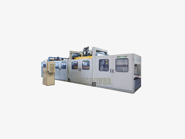三工位门衬真空成型机主要用于生产冰箱门衬,由上料、加热、成型等部分组成。